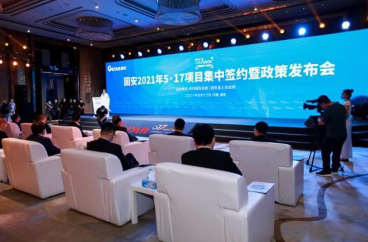 5月17日,固安2021年5·17项目集中签约暨政策发布会成功举办。中国运载火箭技术研究院航天2765科研生产配套一期项目、阿里云IDC机房数据中心及华北结算中心项目、中南高科·京南科技智谷二期项目、中广核辐照加工中心项目等80个优质项目签约落户,项目总投资额近500亿元,聚焦航天航空、电子信息、生命健康等产业领域,为固安经济注入活力,点燃城市高质量发展的新引擎。