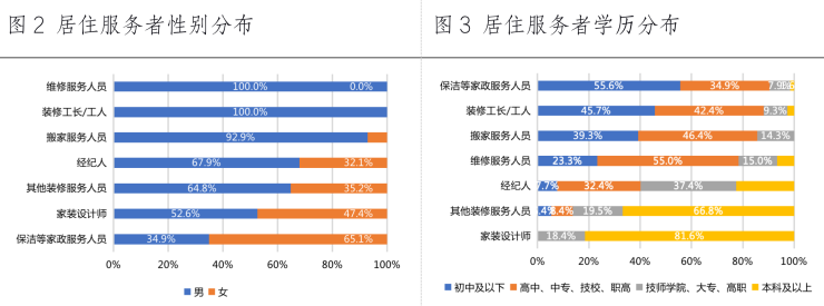 《报告》提出,男性从事居住服务职业居多。居住服务者中男性占比68%,特别是维修、装修、搬家服务人员男性占比超90%。