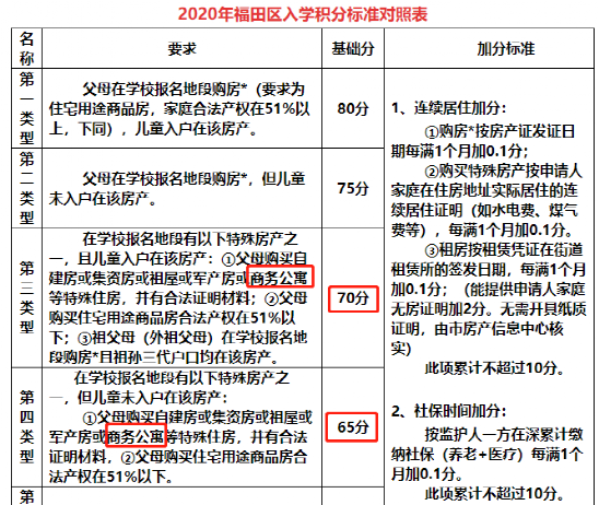 福田区将商务公寓归类为特殊房产,在同等条件下,商务公寓的入学基础分比住宅低10分。