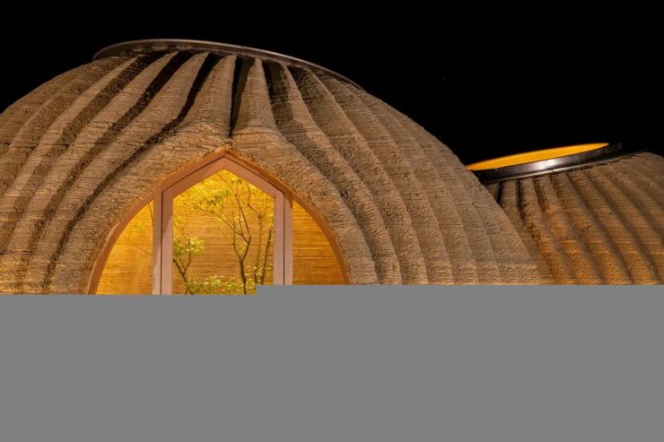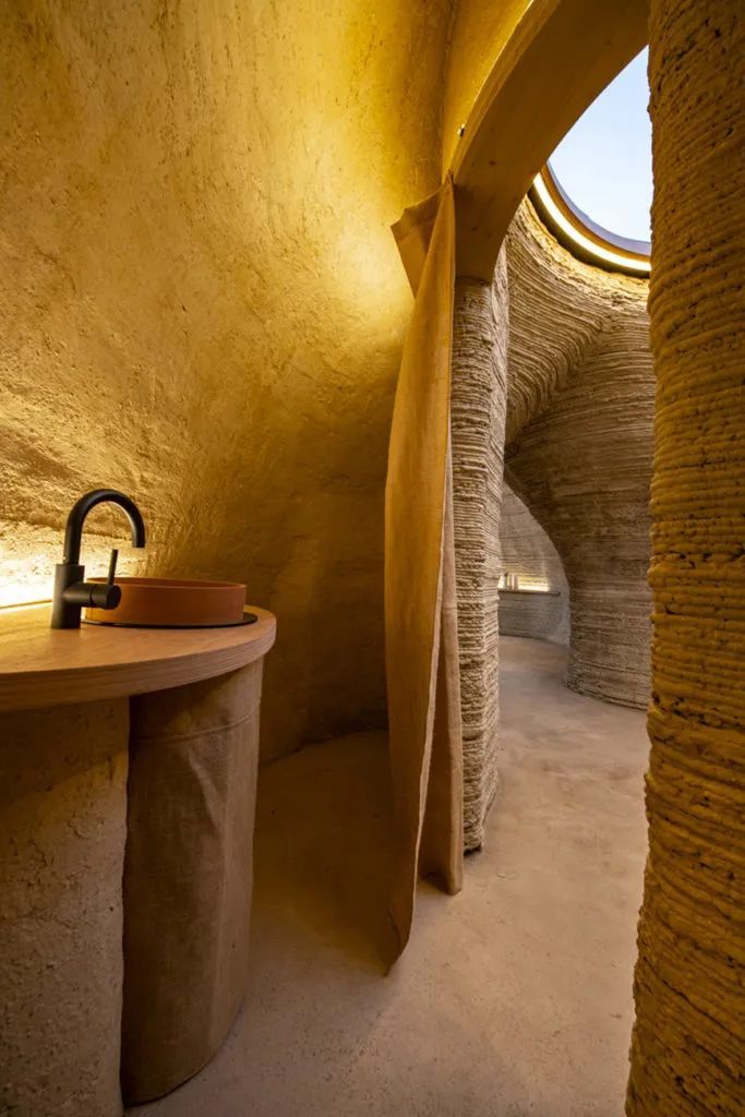 因为不需要底层框架,这座建筑可以在短短200小时内完成。泥土的使用则意味着它的外壳是完全可被生物降解的,做到字面意思上的“尘归尘,土归土”。