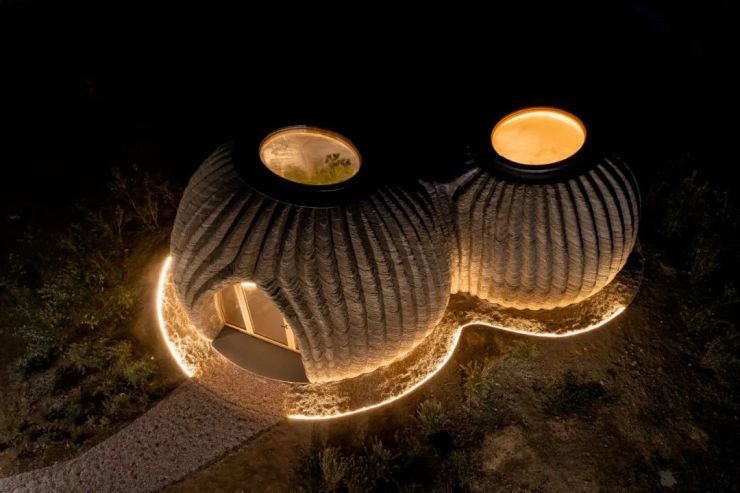 这两栋连着的穹顶外形古朴之中却又有着一些微妙的未来感,既像某个古老村落又像《星球大战》的布景,或许是因为这栋建筑本身就融合了最原始的材料和最前沿的科技。