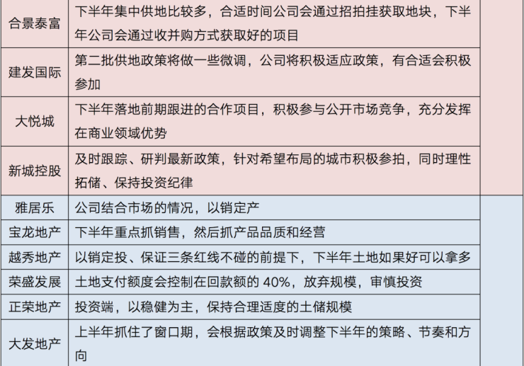 表:部分上市房企2021年下半年投资策略