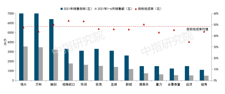 数据来源:CREIS中指数据代表房企2021年1-6月销售目标平均完成率接近50%。