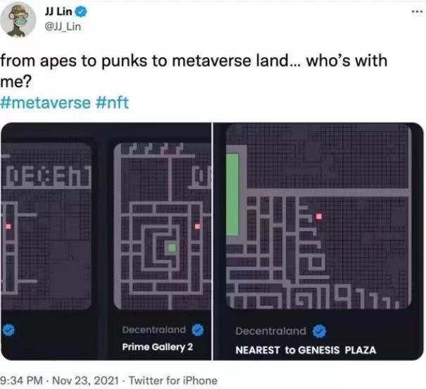还有,前不久著名歌手林俊杰出手元宇宙房产的消息也冲上热搜,其购买了Decentraland元宇宙平台上的三块虚拟土地,大约12.3万美元,约合人民币78.4万元,并引发公众关注。