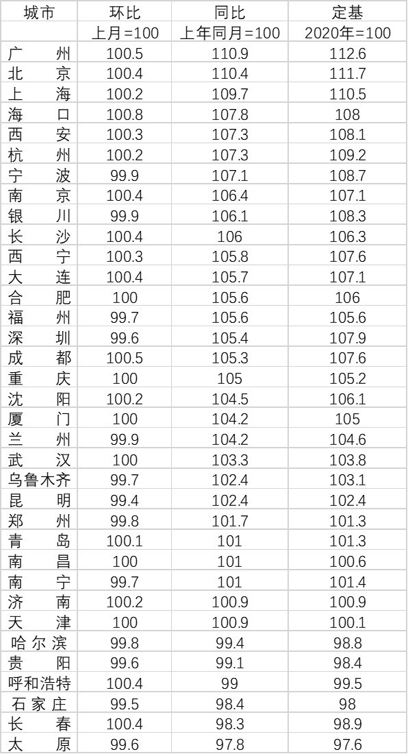 广州同比涨幅较大