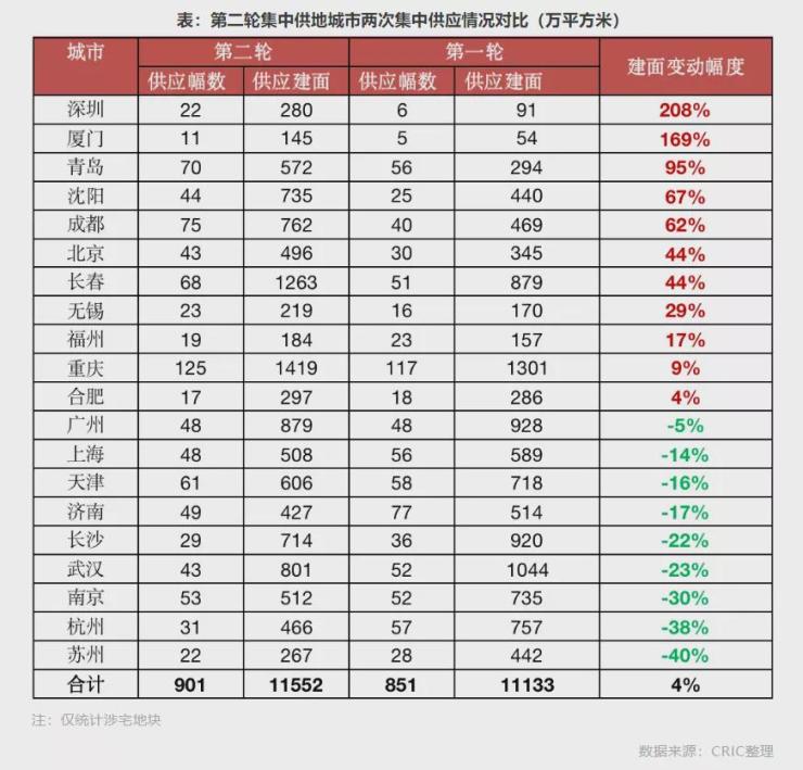 而实际上我们可以看到,本次集中供地的规模并没有大幅减少哦。