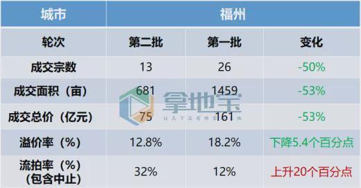 土拍“新规”调整后的排名前列拍,福州成交量跟首批土拍一比直接减半。