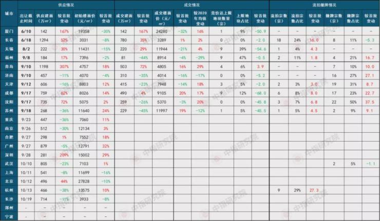 别说总成交额,单看城市间的土拍成交量,6月率先完成第二次集中土拍的厦门,都与后来因土拍规则大改不得不将八月排期推到九十月份、还不断提前撤牌加流拍的城市对比形成两幅光景。