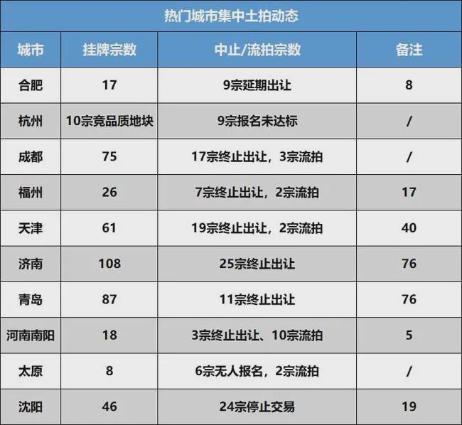 截至目前,已经有7个城市撤牌流拍率高达30%,其中沈阳的开牌宗数更是直接腰斩,占比去到50%。