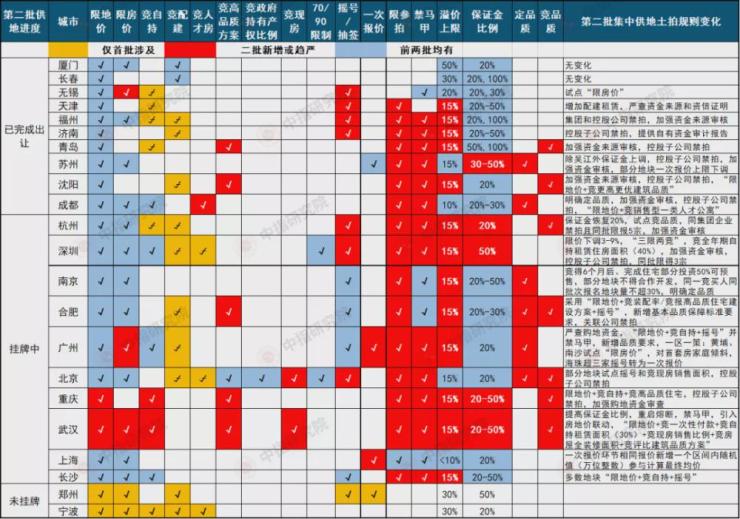 22个重点城市第二批集中供地土拍规则及变化情况(图源水印)