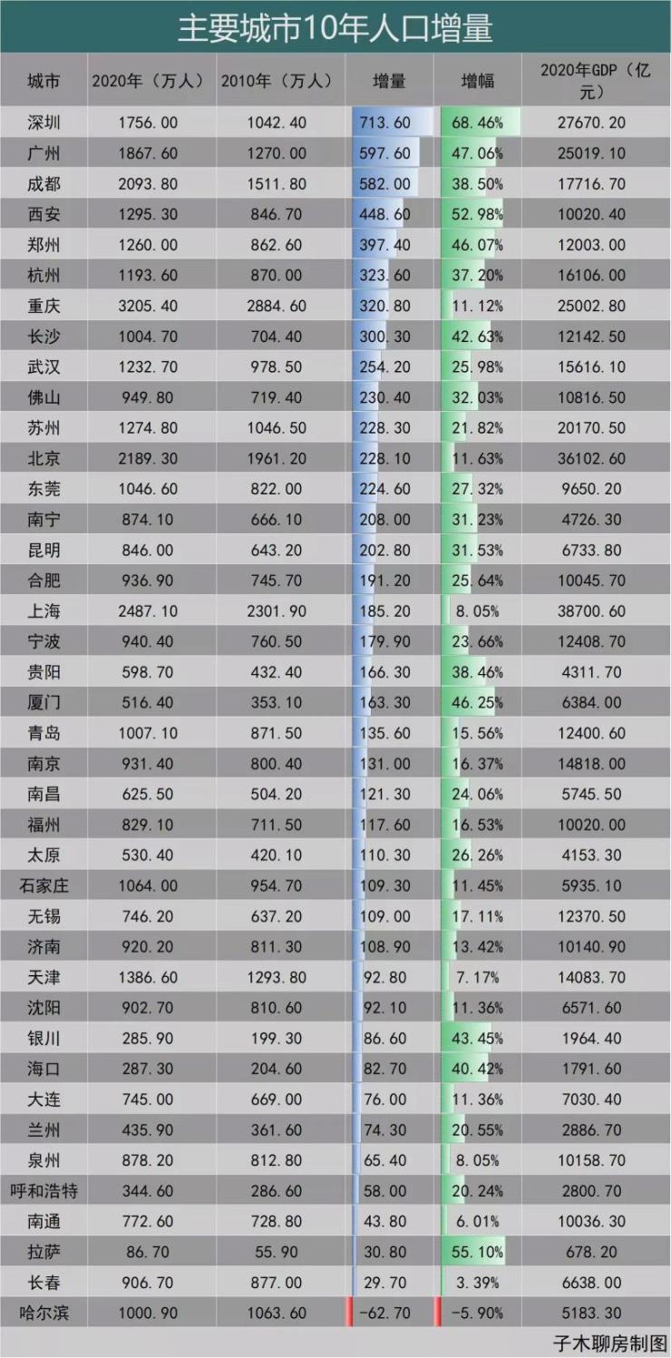七普数据显示,深圳2020年常住人口已经达到1756万,10年增量高达713.6万。