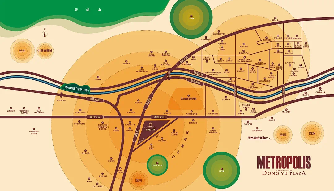 在近一两年的时间里,秦州新城的加速建设,可谓一马当先。自 2015年,天水市提出依照“东西延伸、相向对接、南北优化、旧城 更新”的全体思路,主城带动副城,城市多中心化,成为天水城市 发展的必然趋势,也是天水力捧秦州新城的一个初衷。
