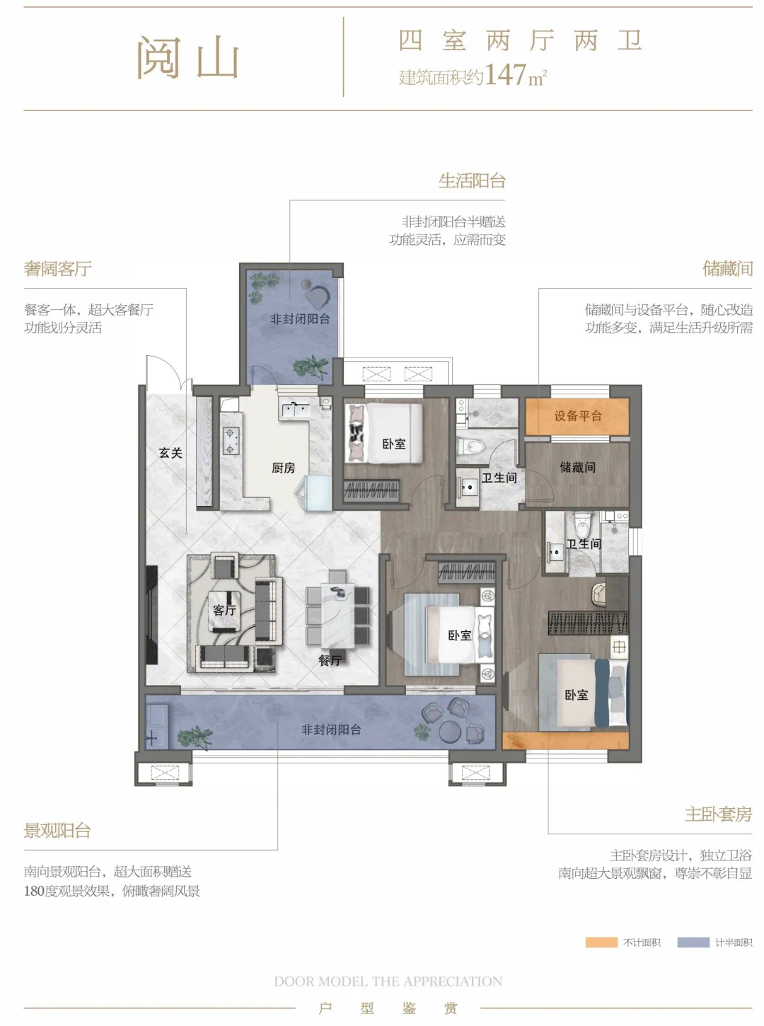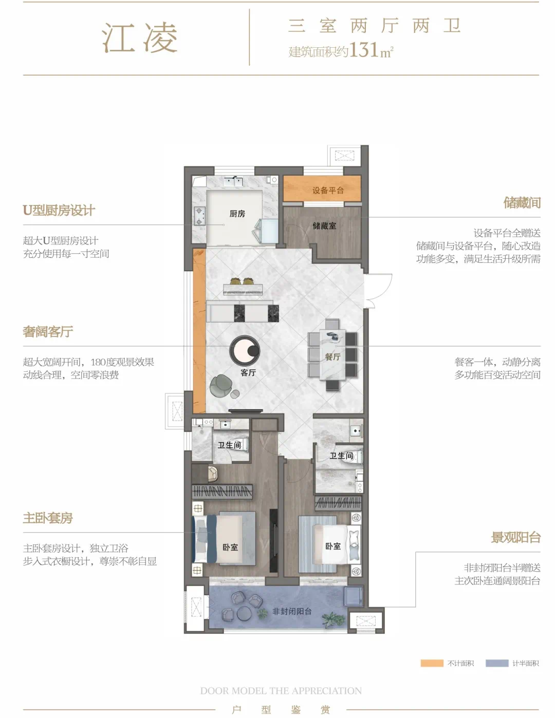 另外,主力户型更有超大赠送面积,建面约118㎡户型,赠送使用面积约11.5㎡;建面约131㎡户型,赠送使用面积约12.9㎡,生活更加阔绰。