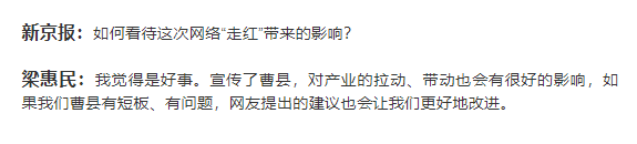 不过,面对曹县的一夜出圈儿,县长梁惠民表现出的态度却很清醒。
