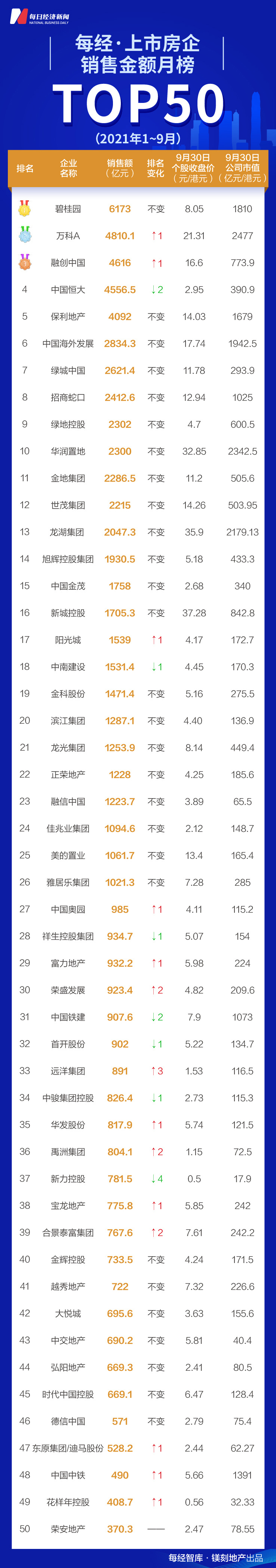三季度楼市惨淡收官 TOP50上市房企单月万亿盛况不再
