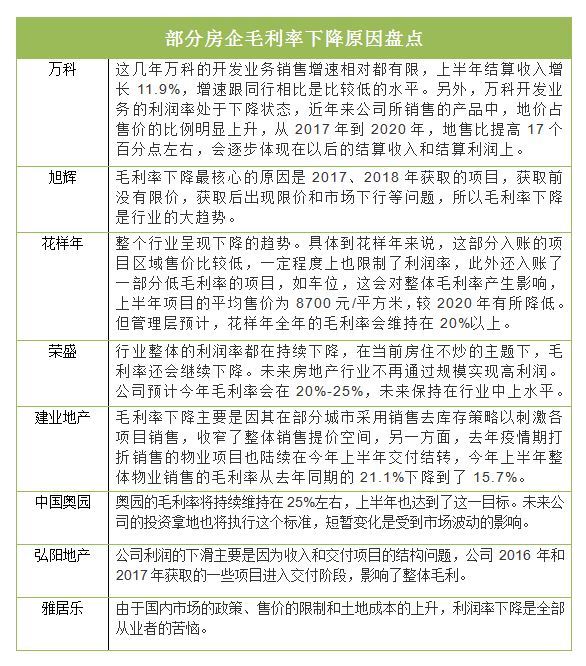 房企中报已披露完毕,但从各家房企披露的数据看,“毛利率下降”已成为房企不得不面对的现实。这也使得不少房企感叹:未来,行业高回报的情况已难再现,行业毛利率下降已成行业趋势。