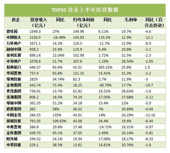 作为销售额前三强之一的中国恒大今年上半年毛利率仅12.9%,同比减少12.1个百分点。