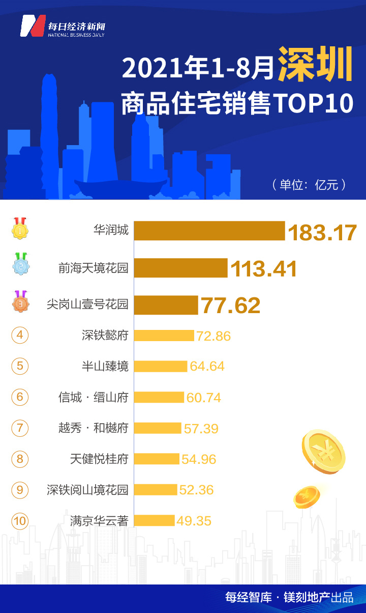 每经数读| 8月全国诞生5个百亿单盘 深圳华润城成全国销冠