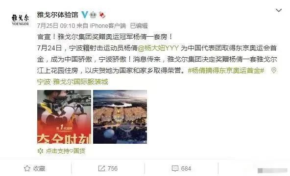 雅戈尔官宣那天,在微博就直言送杨倩一套雅戈尔江上花园住房。