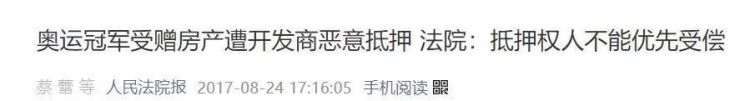 最后湖北省法院终审判决:维护奥运冠军权益,抵押权人不能优先受偿。