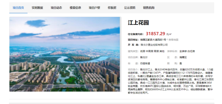 据悉,雅戈尔江上花园,是宁波当地有名的楼盘,位于海曙区石街道奉化江畔,与鄞州公园一江之隔。