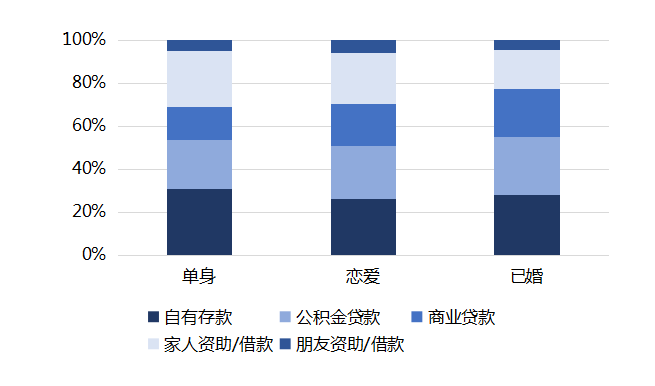 不同婚恋状态青年购房资金来源构成(图源:贝壳研究院)