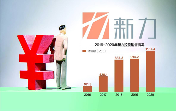 2016~2018年,新力控股的销售额分别为161.3亿元、428.1亿元和887.3亿元,复合年增长率高达136%。2019年成功登陆港交所后,新力控股当年的销售额为914.22亿元。2020年,新力控股销售额达1137.36亿元,成功跻身“千亿房企阵营”。