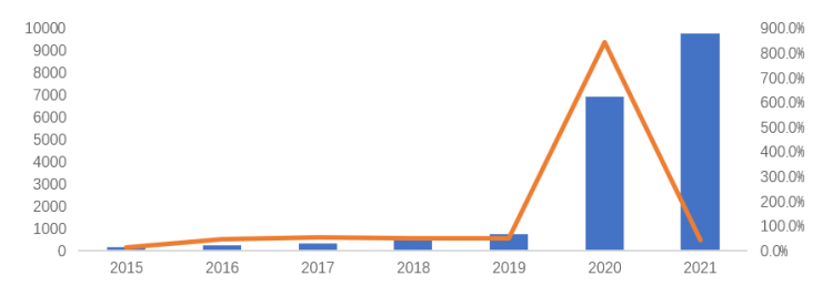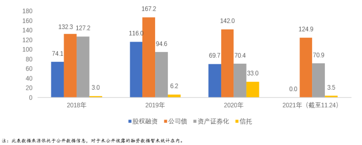 图 2018-2021年住房租赁领域融资金额(亿元)