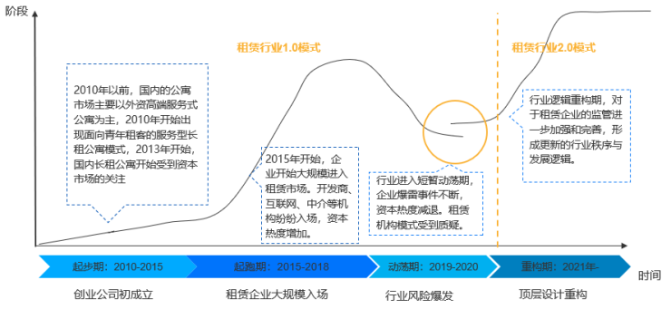 在新时期面向以“全体人民住有所居”为目标的住房发展中,围绕多主体供给、多渠道保障、租购并举的战略方针,7月国务院出台了《关于加快发展保障性租赁住房的意见》,首次从国家层面明确了住房保障体系的顶层设计,以公租房、保障性租赁住房和共有产权住房为主体,也标志着住房租赁顶层设计的完善,以公租房、保障性租赁住房及市场化租赁住房为主体。与此同时,住房租赁监管体系趋于完善、企业税负减轻、保障性租赁住房REITs纳入试点……我国住房租赁行业经历十多年的发展,2019年租赁行业阵痛初显,2020年在疫情的冲击下发生了短暂震荡,那么今年住房租赁行业有哪些新变化,未来又走向何方?本文盘点了租赁企业的数量、分布、融资、模式等的突出变化,并预判未来的行业趋势。