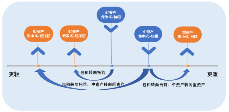 在政府政策监管和引导下,租赁企业重新审视经营风险,其资产经营模式走向更轻、更重两端,专注于打造租赁运营品牌。其一企业重新审视经营风险。包租模式在疫情期间显示出极强的脆弱性,房屋空置风险使得包租企业现金流更加岌岌可危,资金实力较弱企业开始变“轻”,轻资产-分散式和中资产-集中式企业开始由包租转向轻托管模式,中资产企业的装修投入开始转移至业主承担,从而转向轻资产模式。其二企业受政府政策引导。政府发布土地、财政、税收等支持政策鼓励以新建、盘活方式扩大保障性租赁房源,资金实力较强的中资产-集中式企业会通过收购或自建的方式获得租赁房源,从包租转向自持模式,从而转向重资产运营,品牌房企也会增加自持租赁房源,以获得长期收益及未来资产增值收益。更“轻”、更“重”的租赁企业以打造专业化的租赁服务和精细化的运营为重,开启稳步发展。