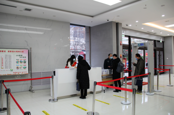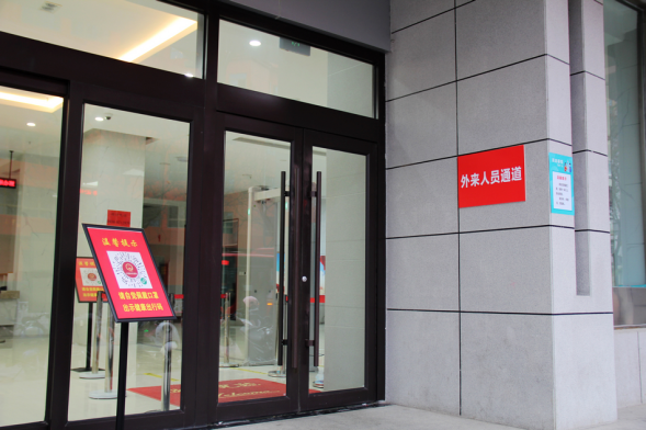 一是完成大厅入口改造。重新规划了大厅出入通道和活动路线,分开设置了“外来人员通道”和“职工通道”,严格执行外来进入人员信息登记、佩戴口罩、体温检测、查验健康码(行程卡)、保持1米以上社交距离等防控措施,全面落实落细进场人员的追溯管理,坚决把严把牢疫情防控的排名前列道关口。同时,利用大厅LED显示屏滚动播放疫情防控宣传标语和相关防疫知识,不断增强广大群众的自我范防意识。