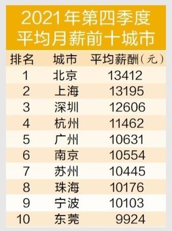 北京薪酬进全国排名前列!38个城市平均月薪首次破万