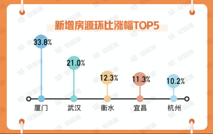 市场供应方面,11月全国新增挂牌房源量环比上涨7.9%,一线四城中,上海环比微涨4.7%,北京、广州、深圳均环比分别微跌3.7%、5.9%、4.3%。厦门、武汉、衡水、宜昌和杭州新增挂牌房源量环比均有不同程度的涨幅。