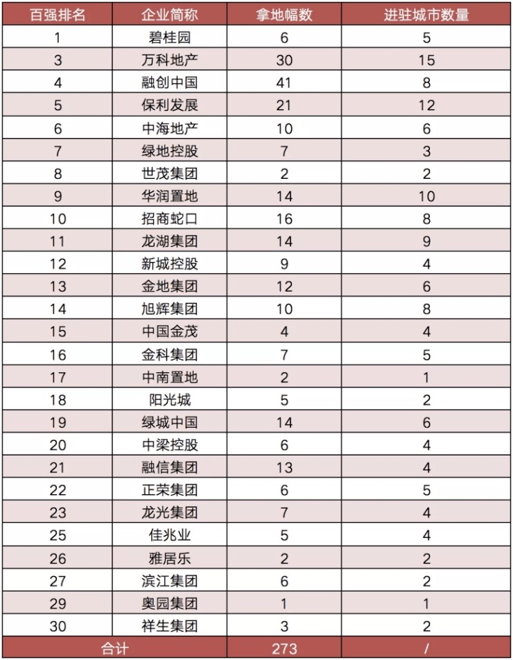 克而瑞数据显示,截至6月10日,TOP30房企在20个城市中共拿下273幅含住宅地块,占全部地块的比重超四成,国企、央企等龙头更是竞争中的头号玩家。从拿地幅数看,期内融创拿地总量达41宗,排名排名前列。