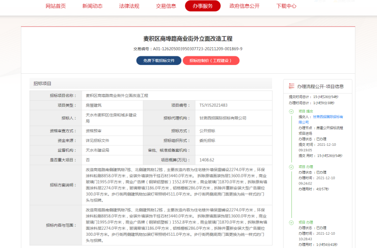 1月17日,天水市公共交易资源中心发布《麦积区商埠路商业街外立面改造工程》公告,此举标志着麦积区商埠路商业街外立面对外形象会有新改善、提升对外形象,利于周边居民消费新体验。