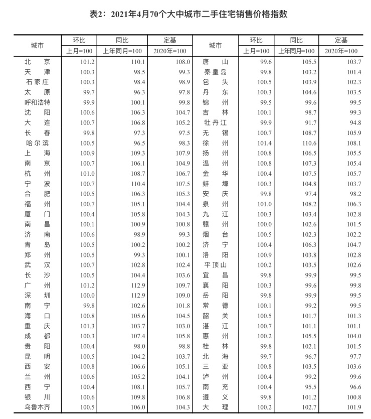 国家统计局城市司首席统计师绳国庆解读指出,2021年4月份,统计监测的70个大中城市新建商品住宅销售价格涨幅总体有所扩大,二手住宅涨幅有升有落。