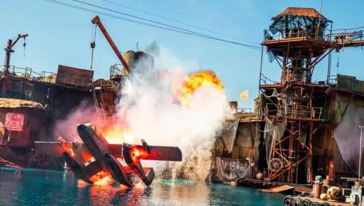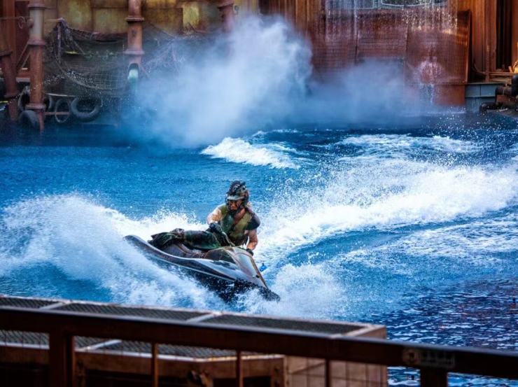 未来水世界的“水上爆破特效”一直都是环球影城较受欢迎的项目之一。而北京环球度假区的“未来水世界”首次以景区的形式亮相,可以观看水上特技表演和枪战、爆炸特效。步入“未来水世界”主题景区,氛围充满魔幻感,最神奇的是洗手间里也能听到海浪声。