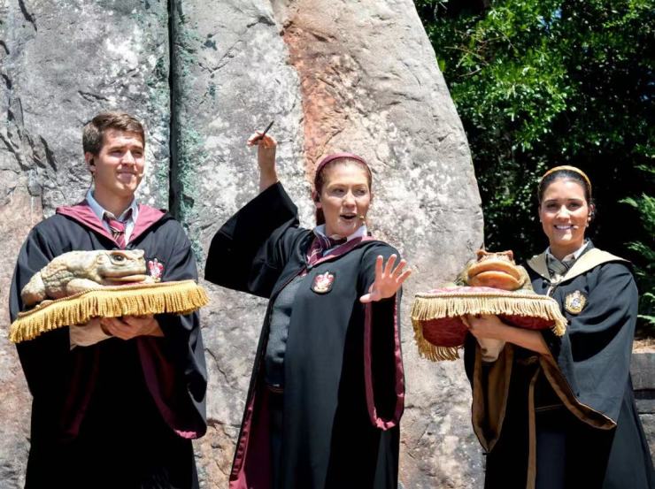 必看:白天在表演区可观看两场娱乐节目,分别是青蛙合唱团和三强争霸赛动员会;夜晚可以观看哈利波特的魔法世界灯光秀。