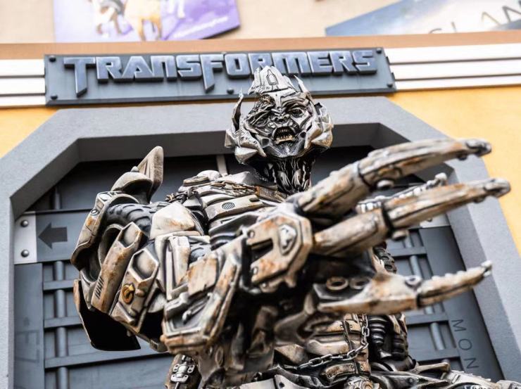 整个环球度假区里,最刺激的园区便是“变形金刚基地”了,所以很多人进入园区会直奔这里。整个景区的建筑都充满了赛博坦风格和科技感,能看到威震天、大黄蜂、霸天虎等机器人形象。值得一提的是,这里还能看到1:1全尺寸的擎天柱雕像,十分震撼。