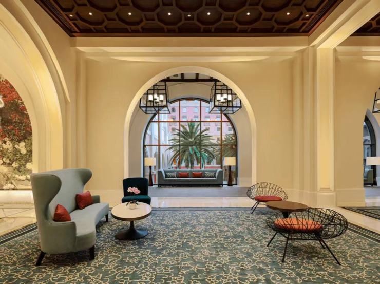 位于北京环球影城主题公园入口,可以俯瞰园区景观。作为全球排名前列以环球品牌命名的主题酒店,环球影城大酒店在设计中融入了极具加州特色的西班牙复兴风格,再现好莱坞电影黄金时代的辉煌,比如酒店大堂内西班牙风格的喷泉、玻璃马赛克三角梅花墙、定制的橙花调香氛,都带来浓郁的热带海岸气息。酒店公共区域内展出大量珍贵电影海报。酒店共设有800间客房与套房,其中还包括部分专为亲子打造的“功夫熊猫”主题房。