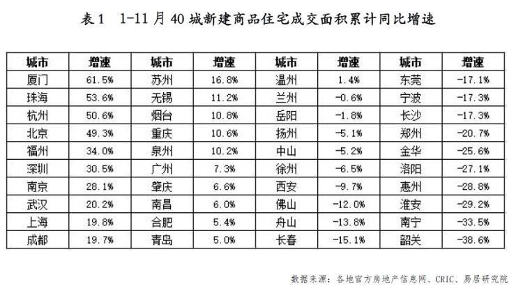 在这份报告中,青岛前11个月新建商品住宅成交面积以同比增长5.0%的城市排名第20位,位列全部正增长城市的倒数第二名。
