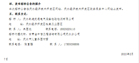 2月8日,小编从天水经济技术开发区官网获悉,天水轨道交通电气设备检验检测产业园工程项目有新进展,目前正在对该项目监理及工程造价审核进行公开招标,择优选定承包人。具体信息如下图: