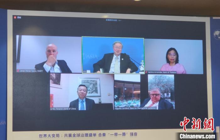 4月18日,中国人民银行副行长李波以视频形式参加论坛。 中新网记者张旭 摄
