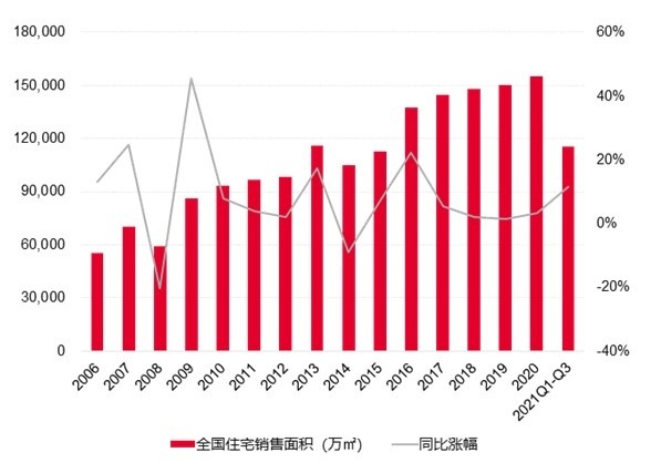 前三季度,全国住宅新房成交量115,432万平方米,同比增长11.4%,增速较上半年滑落18个百分点。其中,单三季度同比下降14.5%。预计四季度政策面将延续房住不炒的整体思路,累计成交规模增速或将进一步收窄。