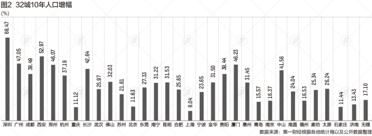 32城10年人口增量超100万 十大人口增长城市有谁