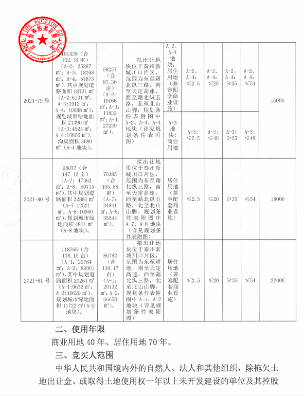 12月28日,天水市公共资源交易中心“招标/资格预审公告”栏发布一则关于“天水市2021-78号等四宗国有建设用地使用权挂牌出让”的公告。 据悉,天水秦州新城川口片区拟出让四宗地,总计约630亩。该四宗地,分别为2021-78号宗地,合152.74亩;2021-79号宗地,合152.16亩;2021