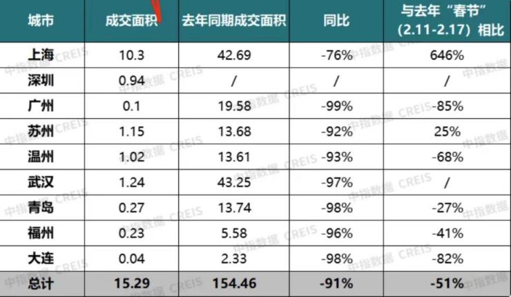 而深圳在春节期间,其新建商品住宅累计成交0.94万平方米,市场仍相对低迷,观望情绪较高,除个别网红盘以外,多数楼盘去化都不理想。
