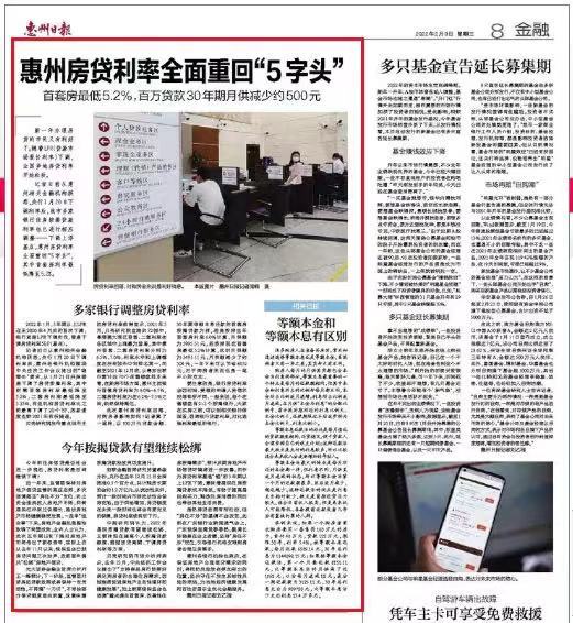 (1)央行1月20日下调利率后,惠州各银行机构从1月21日开始普遍下调了房贷按揭利率,其中刚需首套房利率较低降至5.2%,二套房利率较低降至5.35%,放款速度也较2021年有所提速。