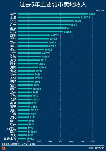 原标题:全国卖地收入排行:谁是最依赖土地财政的城市?