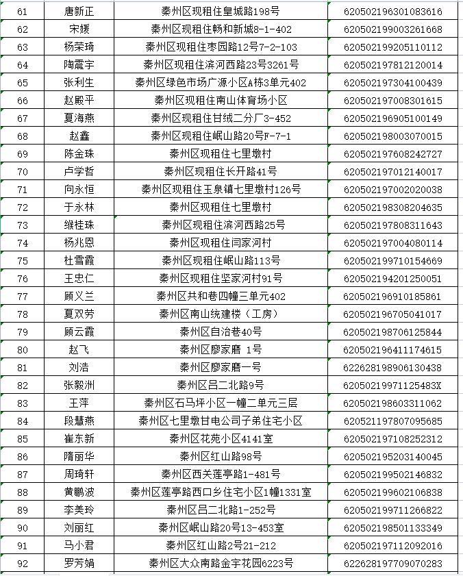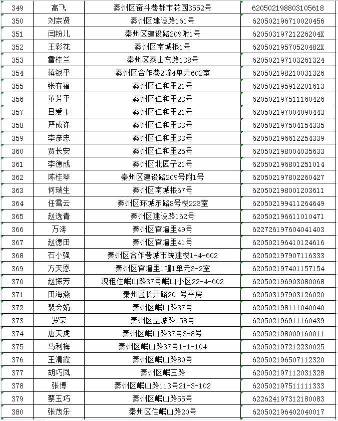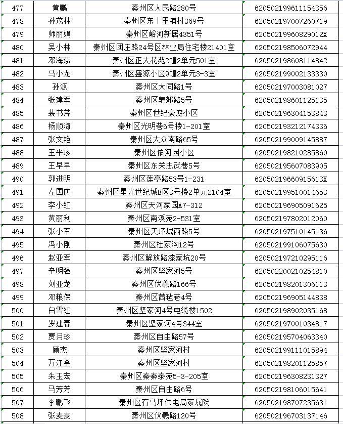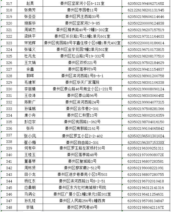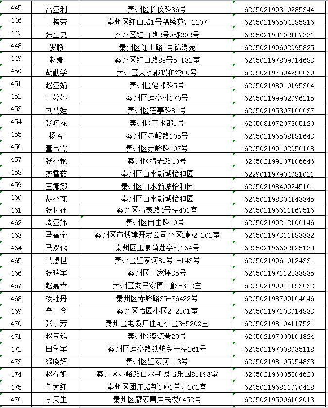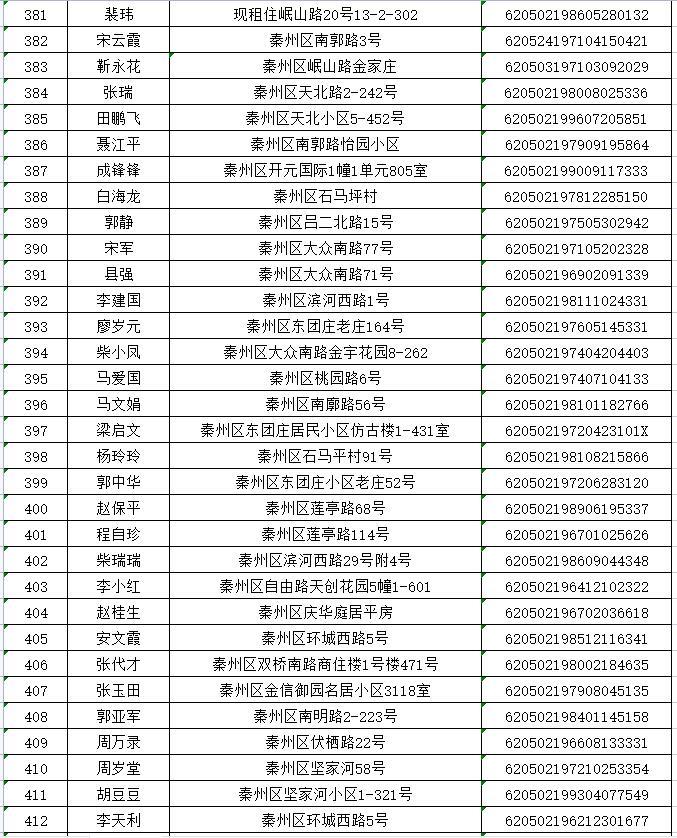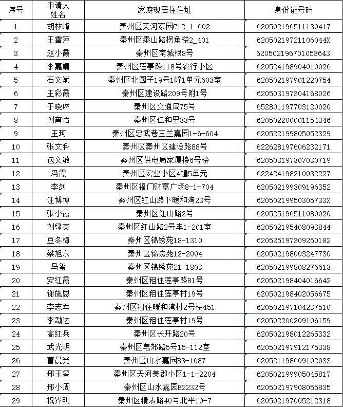天水市秦州区2022年排名前列期保障性住房公示名单